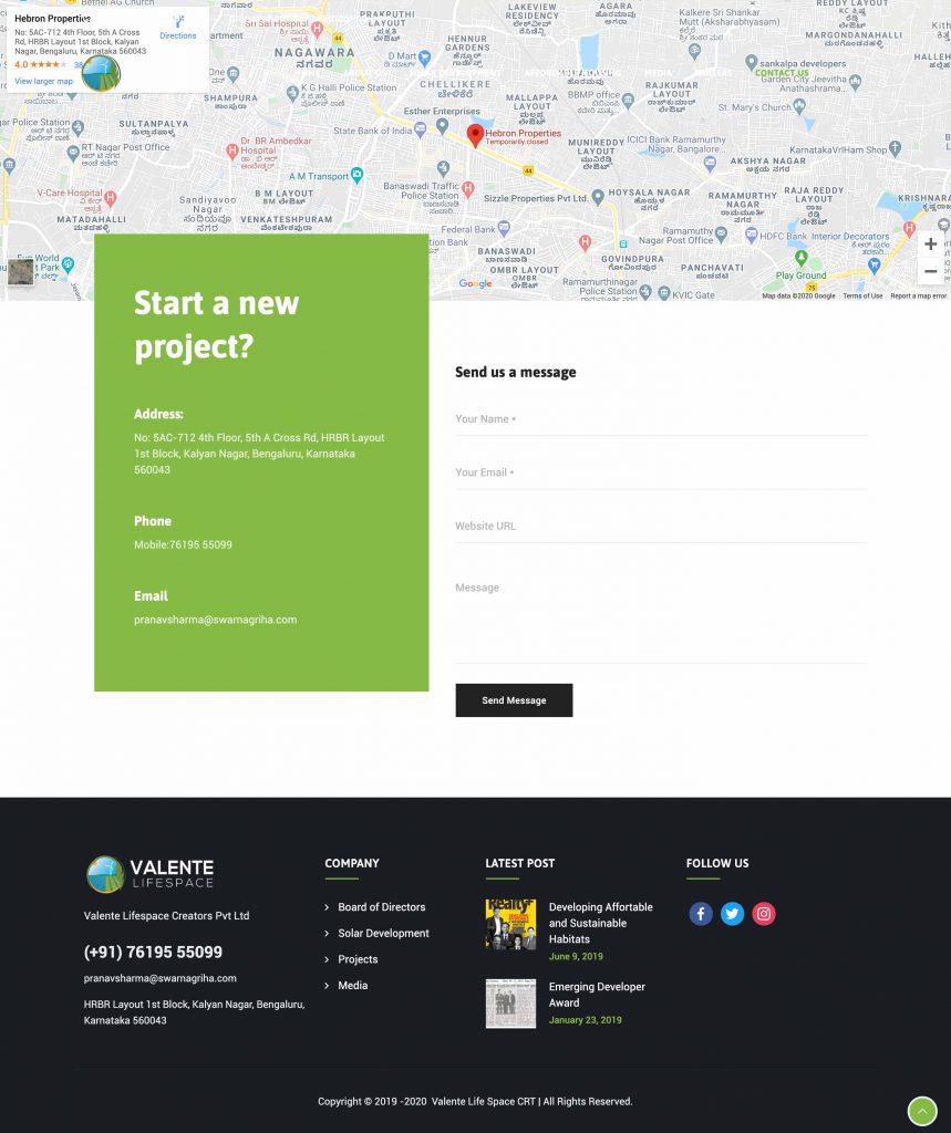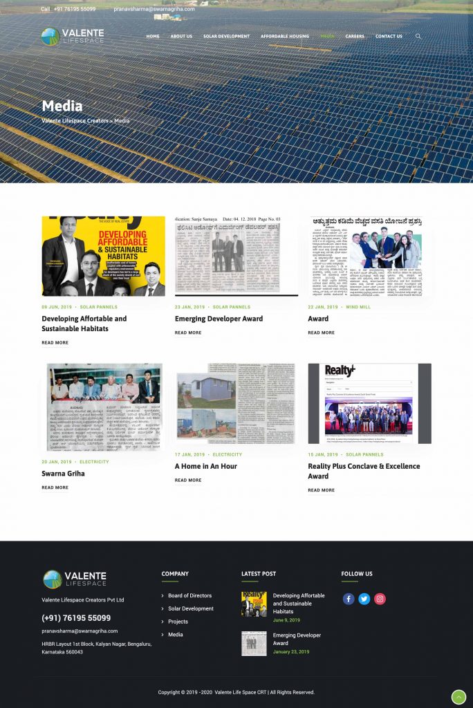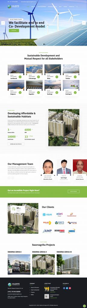 Client Valente Lifespace Creators Pvt Ltd Services Premium Wordpress development for sustainable development start-up - Bangalore
